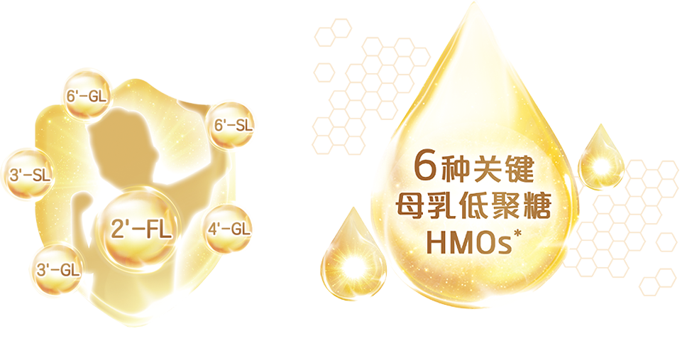 * 指本品中添加的母乳低聚糖(2′-巖藻糖基乳糖,2′-FL)以及經(jīng)檢測(cè)本品含有5種與母乳低聚糖HMO結(jié)構(gòu)一致的低聚糖(3′-SL、6′-SL、3′-GL、4′-GL、6′-GL)。
