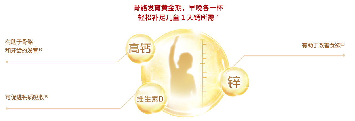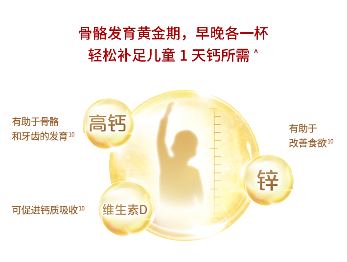 ^ 2杯海普諾凱荷致4段兒童奶粉約含624mg鈣,根據(jù)《中國(guó)居民膳食營(yíng)養(yǎng)素參考攝入量》(2023)每日鈣攝入量的建議。早晚各一杯荷致4段,結(jié)合日常飲食可以輕松滿足3-12歲孩子每日鈣的攝入量。